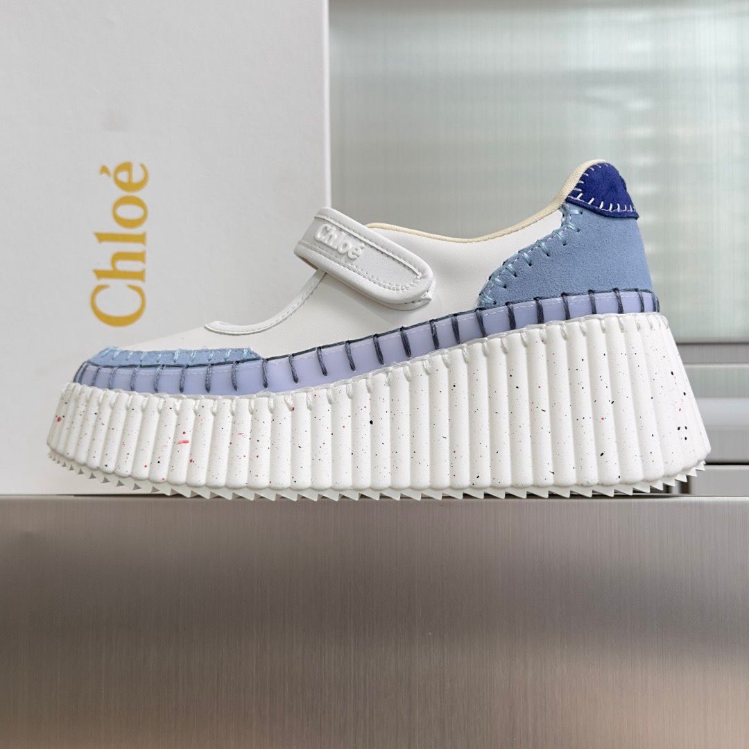 Chloe Nama wedge sneakers in Ashes Blue and white
