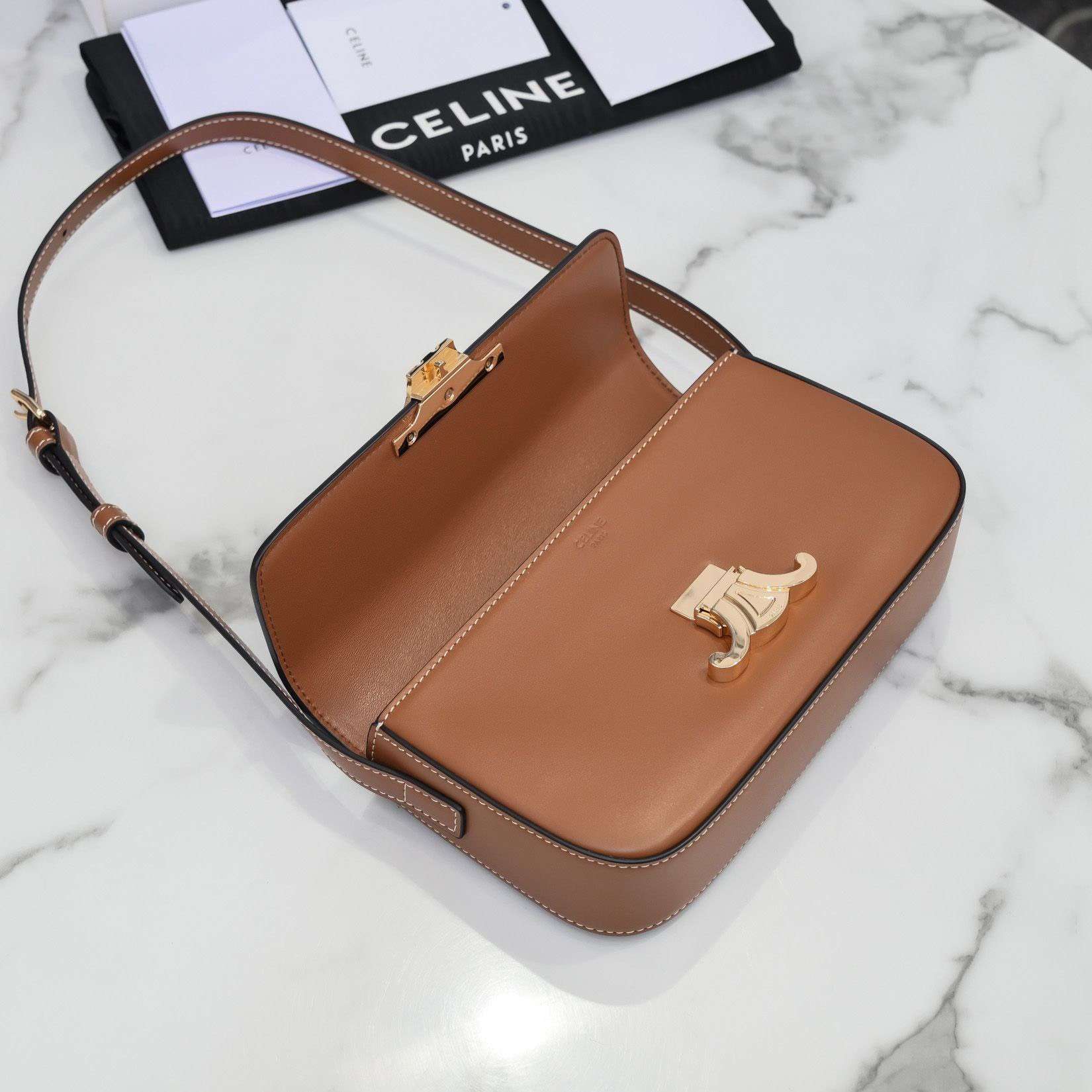 Celine Triomphe Brown Handbag Super Premium Super Smooth Leather 20x12cm