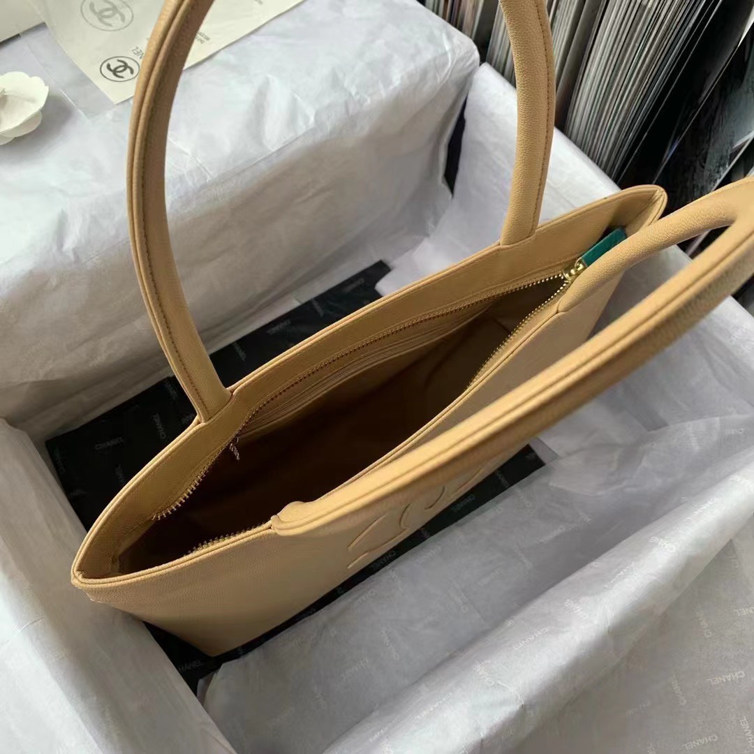 Chanel Vintage Classic Like Auth Handbags Lock Gold Nude 30x21x8cm