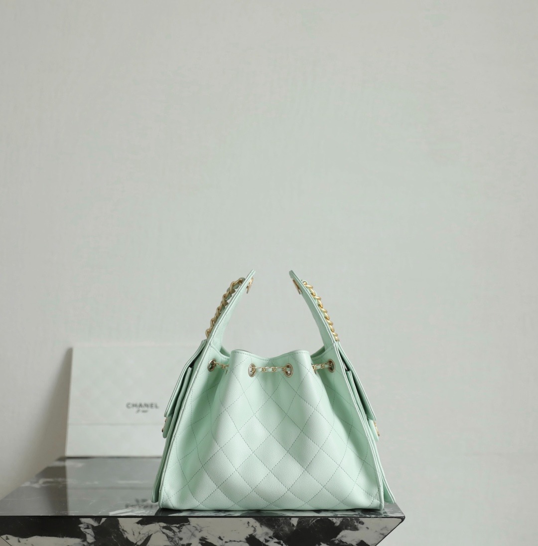 CHANEL 25 HANDBAG 30 IN GREEN CAVIER GOLD HARDWARE