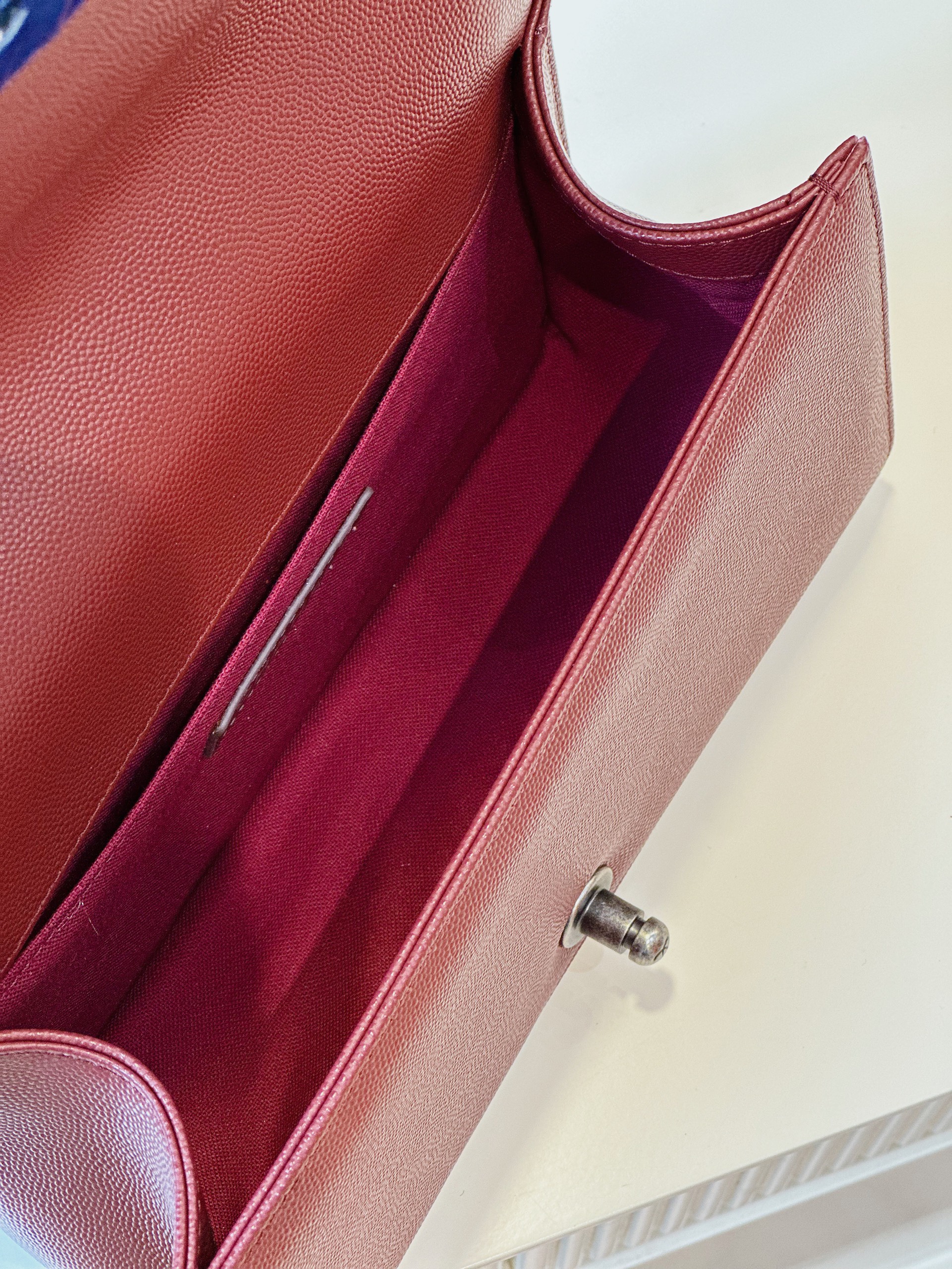 Chanel Boy Medium Handbag Woman’s V-Pattern Red Leather 25cm