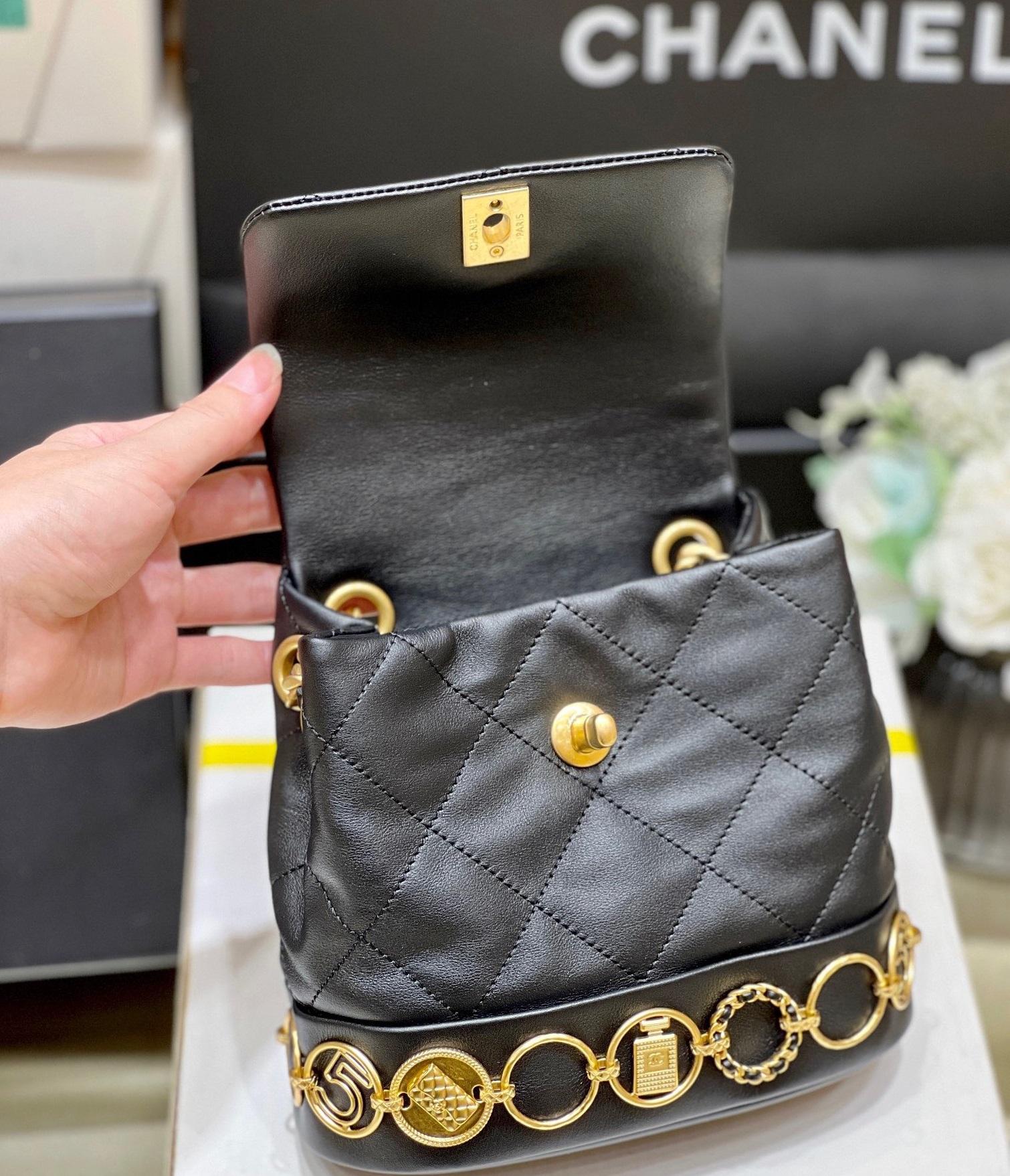 Chanel Charm Backpack Replica 11 Black Smooth Leather 18x18x8cm