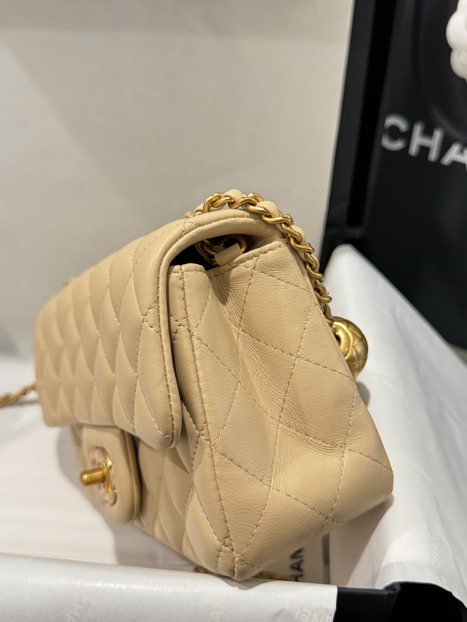Chanel Classic Bell Bag 11 Handbags Beige Leather Lock Gold 20cm quantity