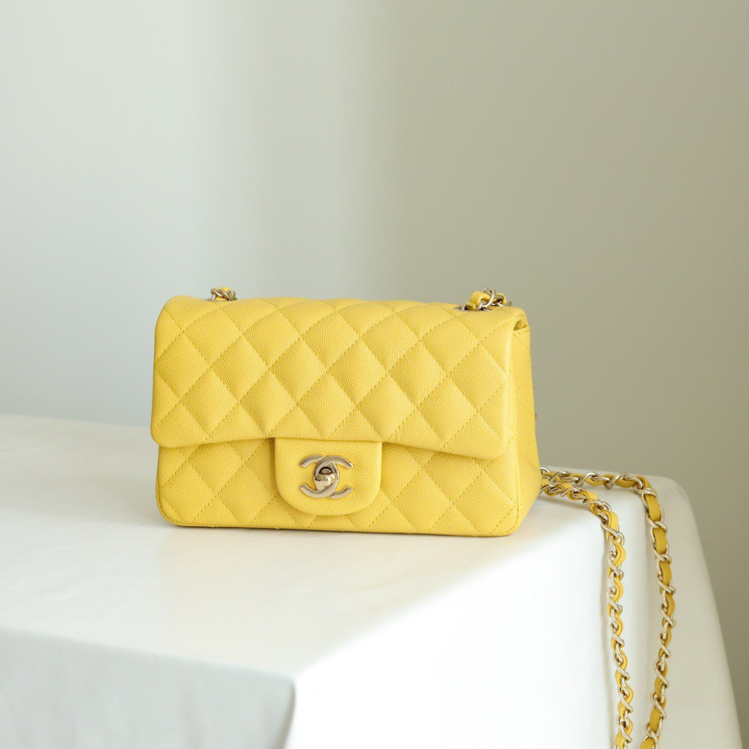 Chanel Classic Flap Mini Like Auth Handbag Womans Yellow 20cm