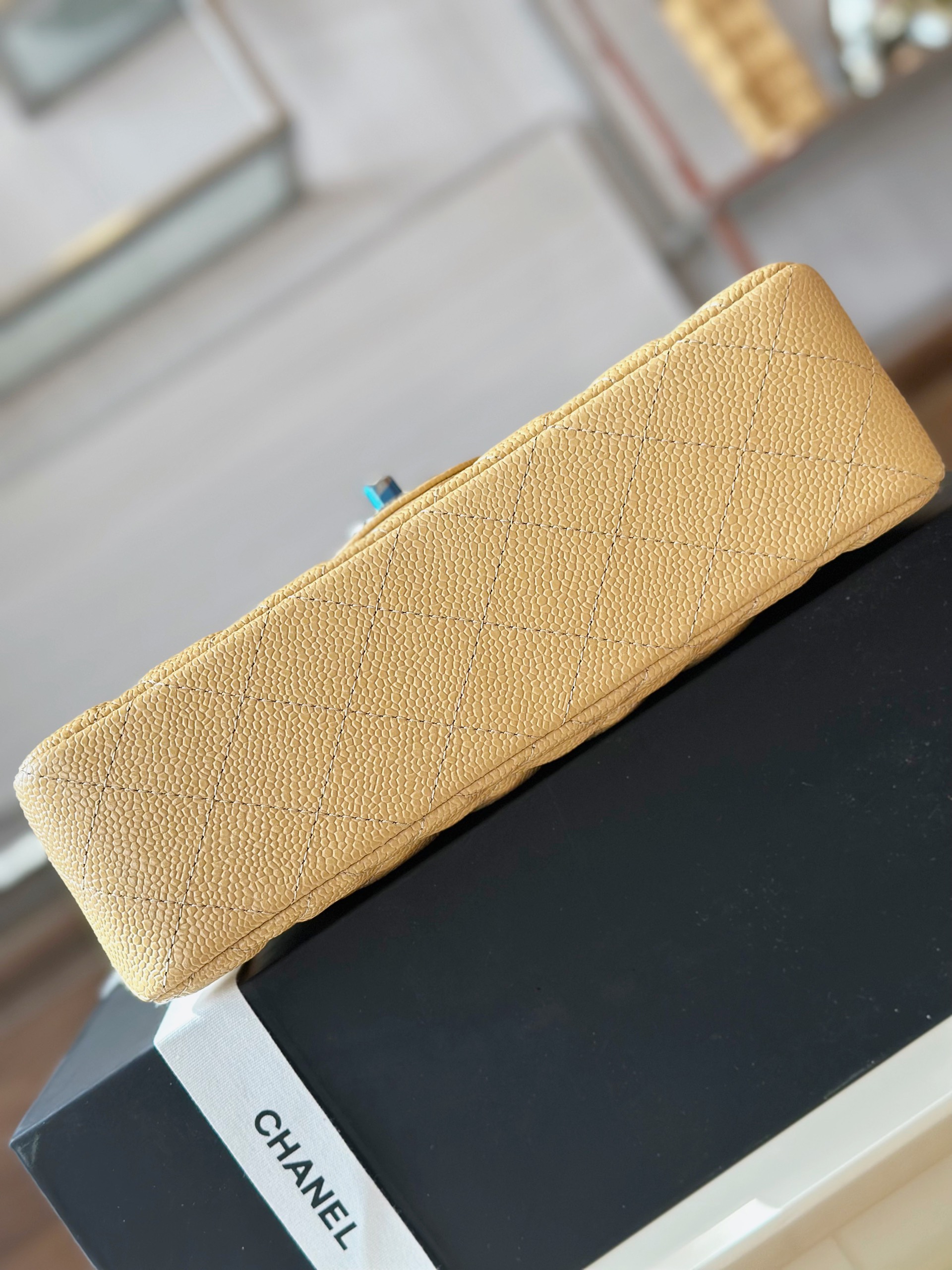 Chanel Classic Like Auth Handbags Beige Leather With Lizard Skin 23cm quantity