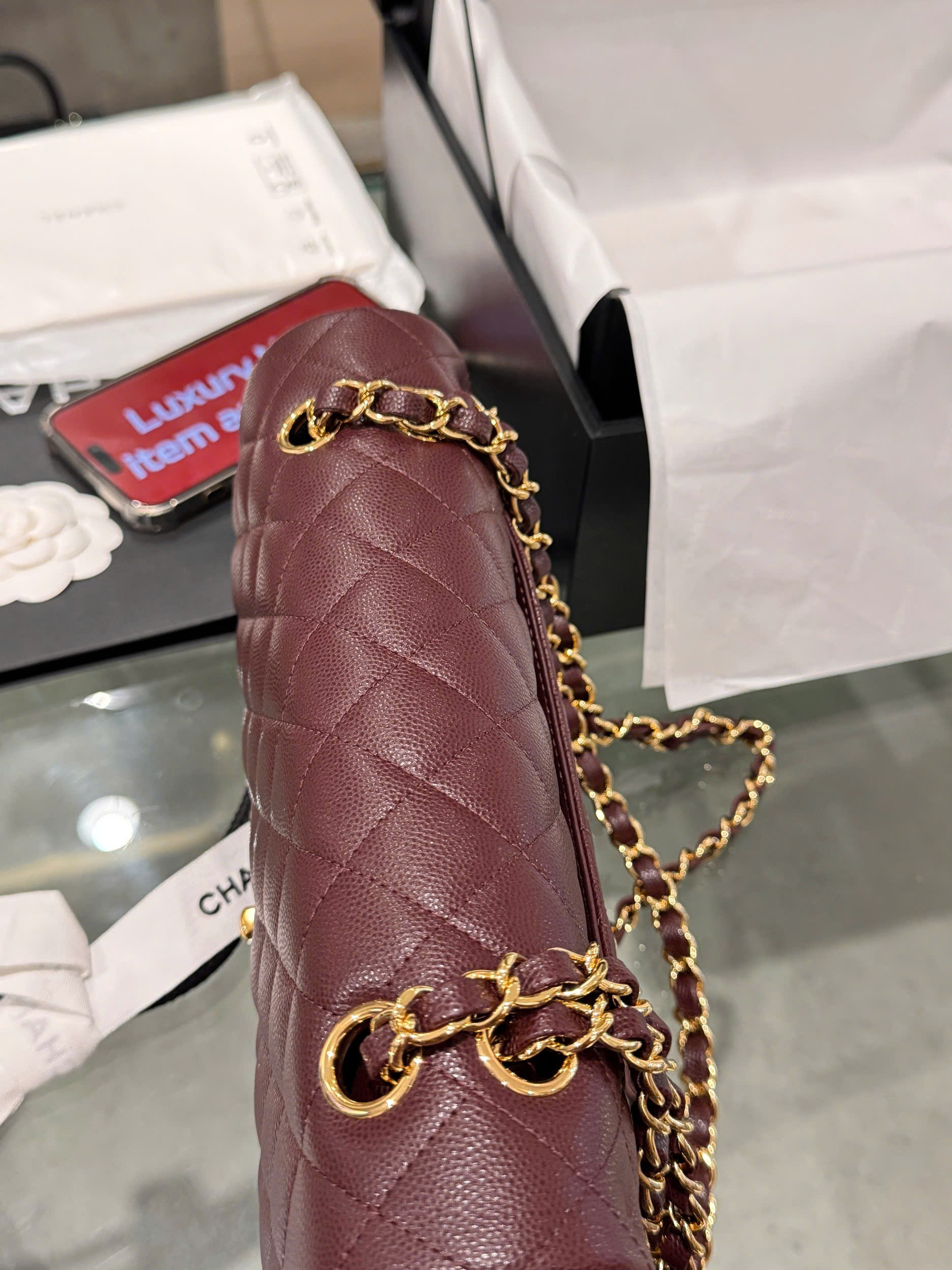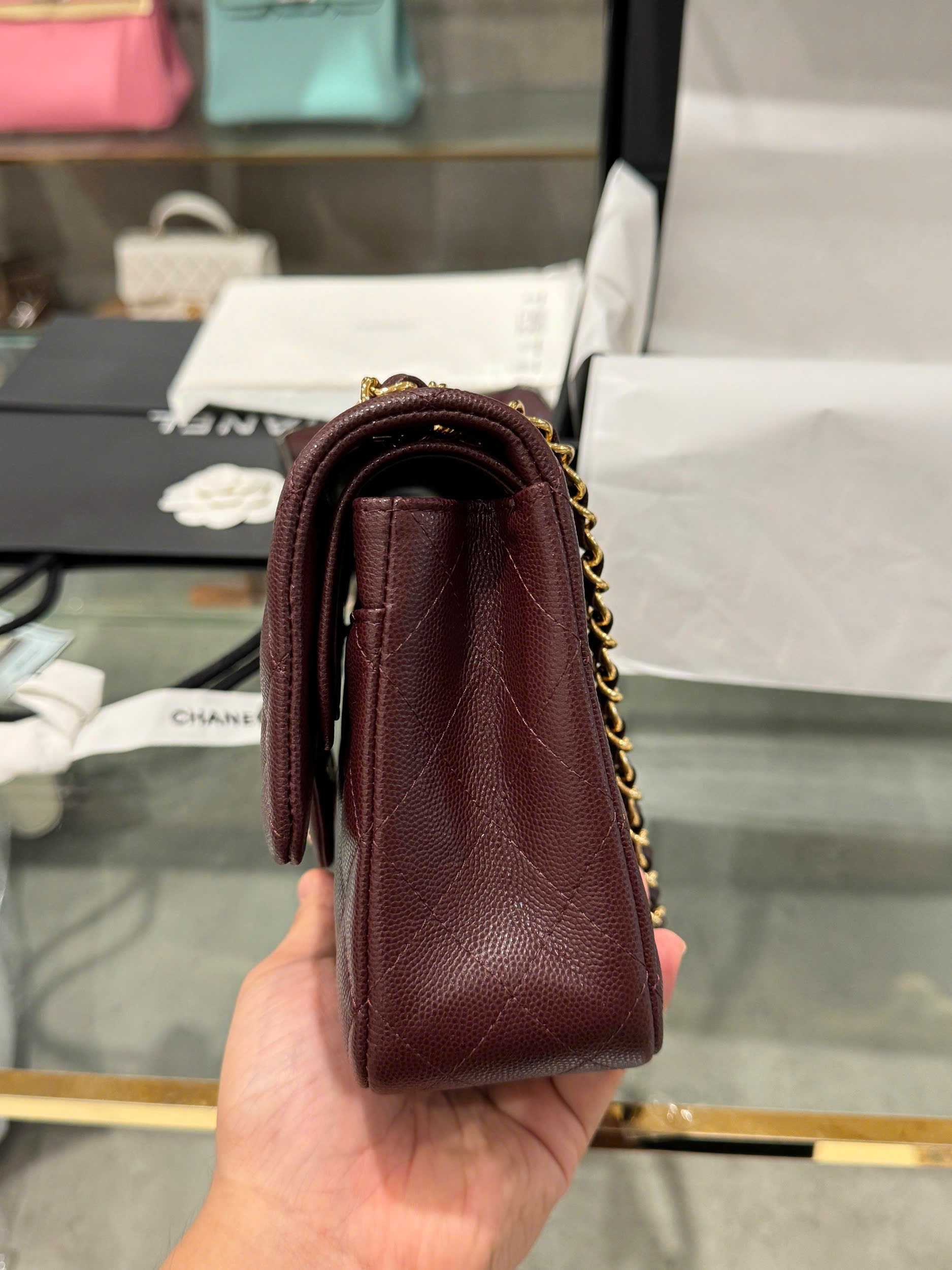 Chanel Classic Plum Red Color Like Auth Handbags With Lock Gold 25cm quantity