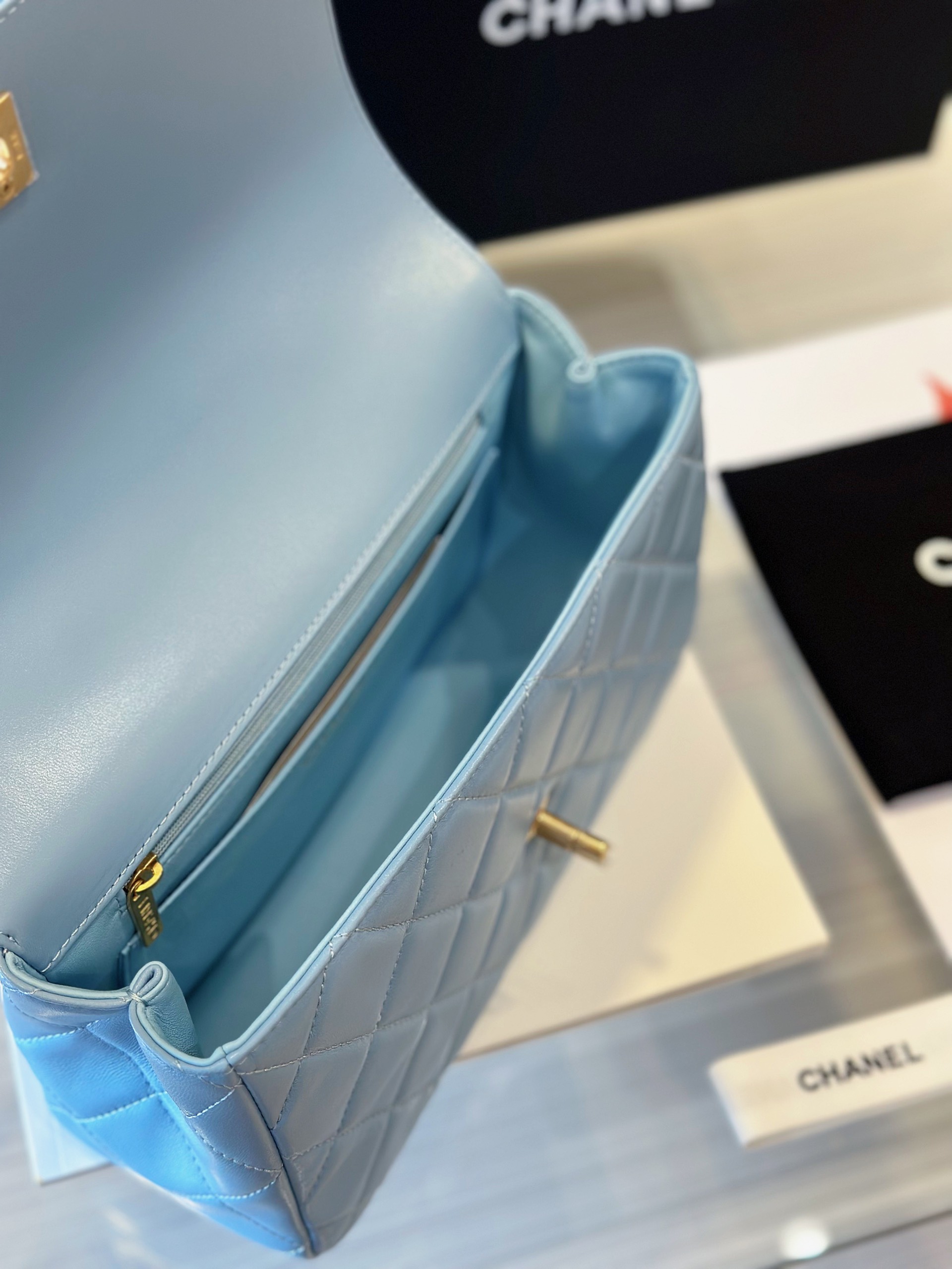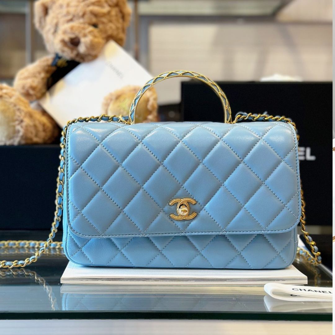 Chanel Coco Mini Handbag Like Auth Blue Smooth Leather With Lock Gold 22x21cm quantity