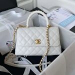 Chanel Coco White Womans Handbags With Lock Gold 24cm