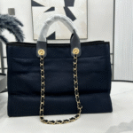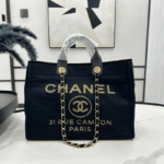 CHANEL DEAUVILLE LARGE 38 TOTE BAG IN BLACK CANVAS WITH GOLD EMBROIDERED LOGO
