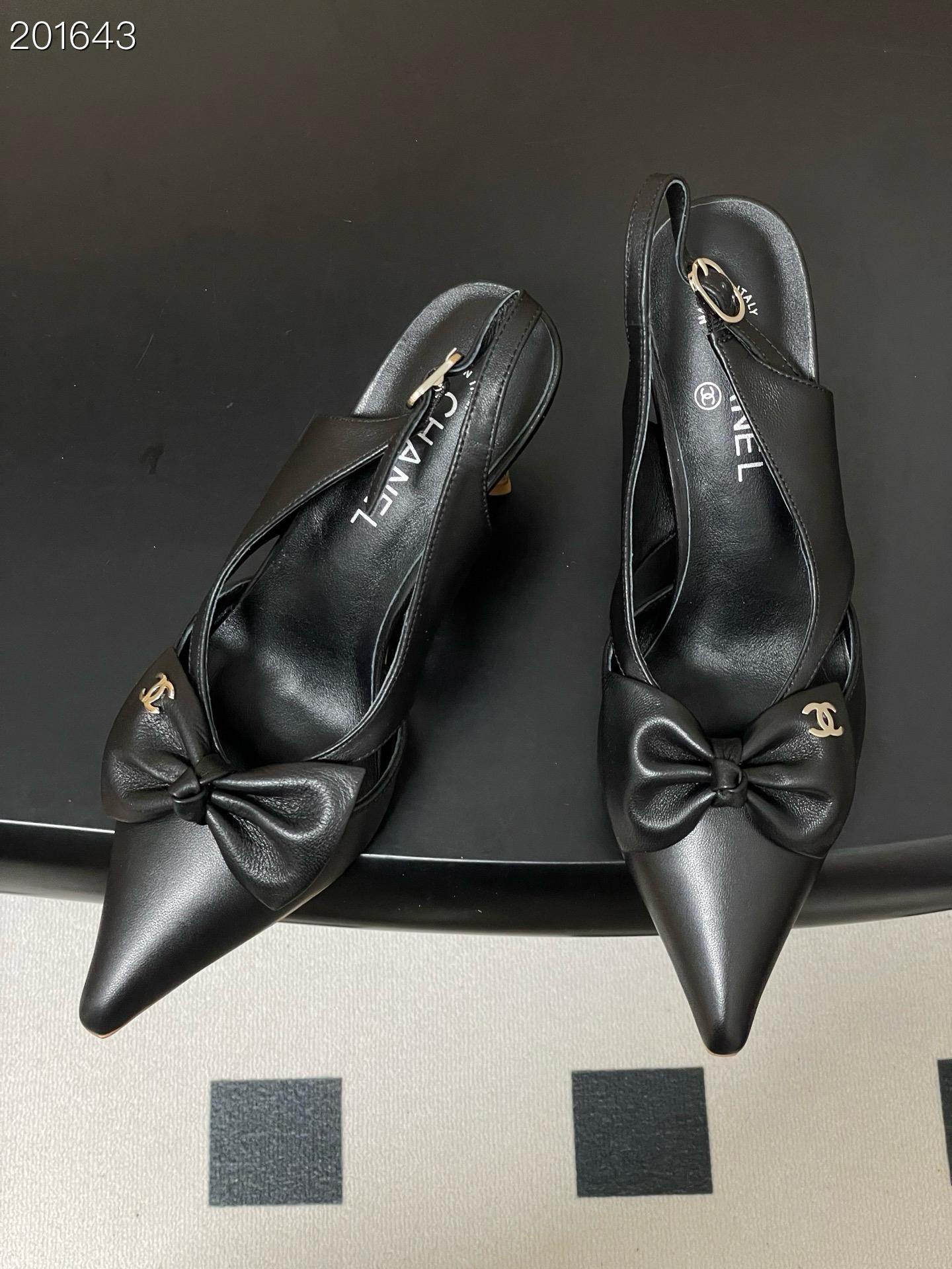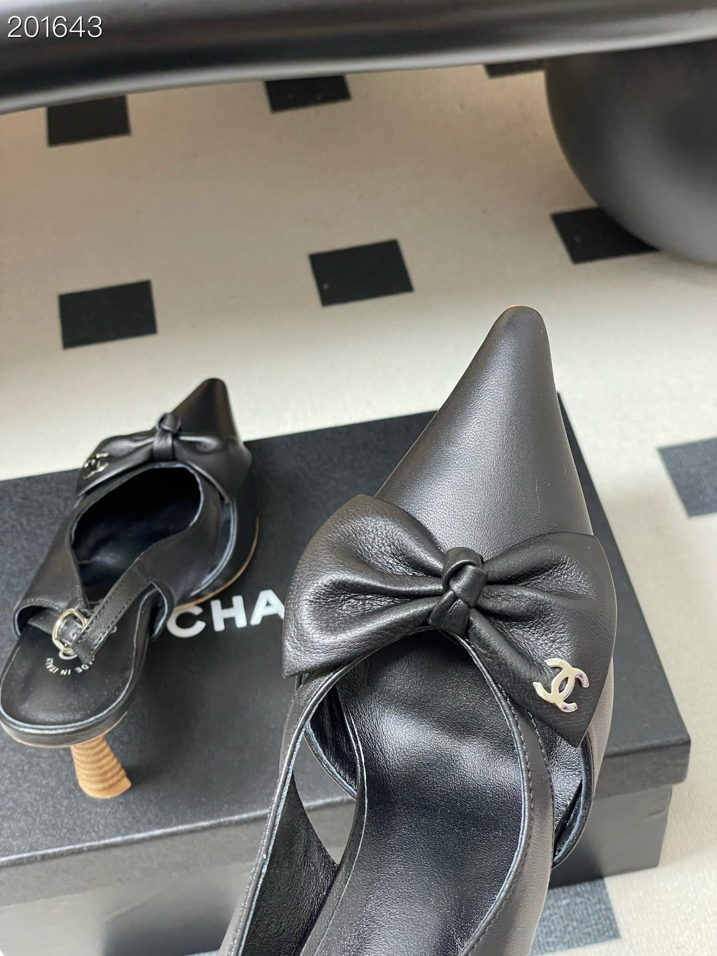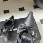 Chanel Logo Bow Sling-back Heels Black