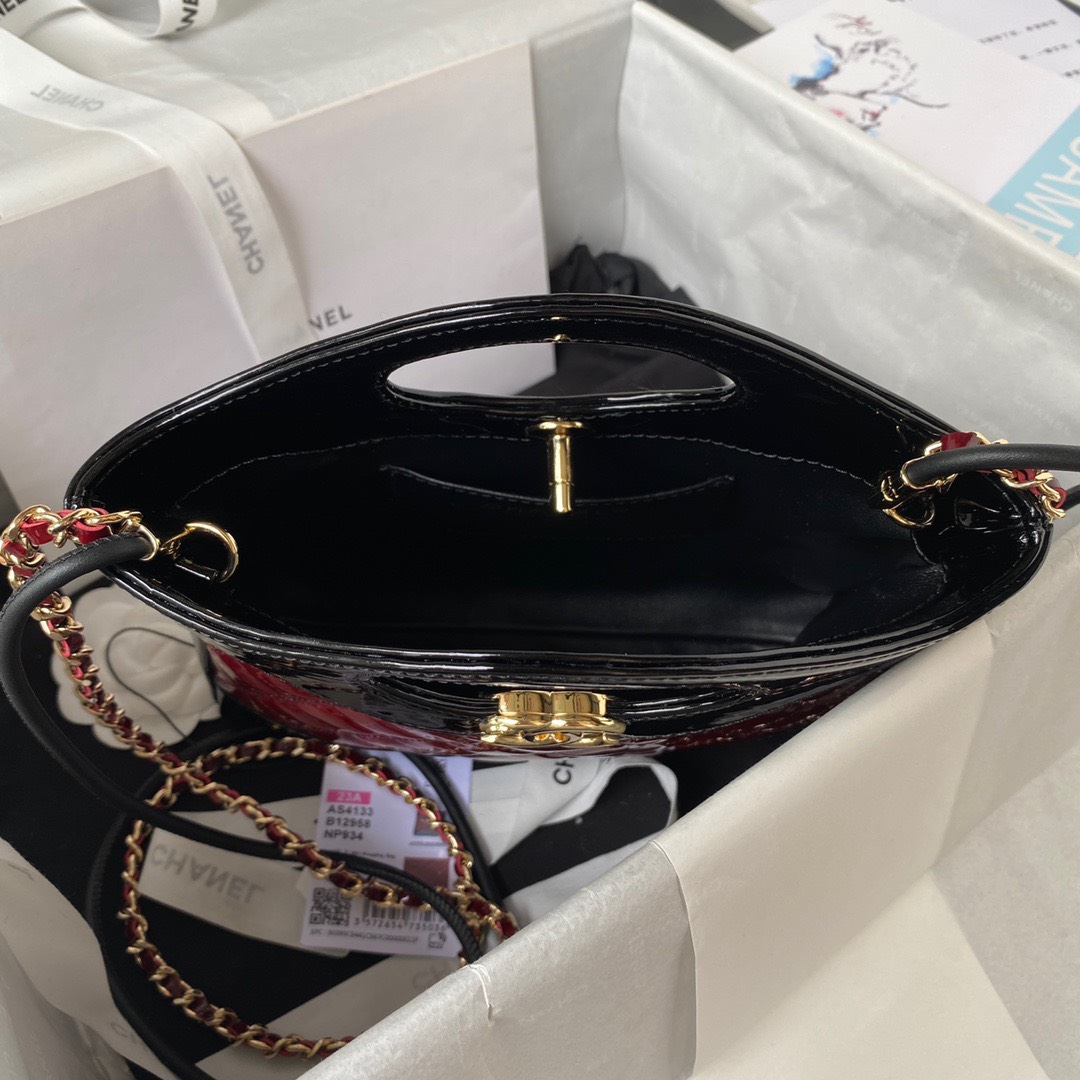 Chanel Mini Shopping Bag Handbags Red Shiny Leather 31cm
