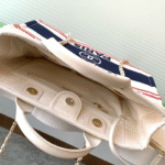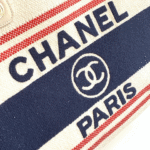 CHANEL SHOPPING BAG 34 IN WHITE RED AND NAVY BLUE CANVAS