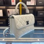Chanel Trendy White Smooth Leather With Lock Black Handbags 25cm
