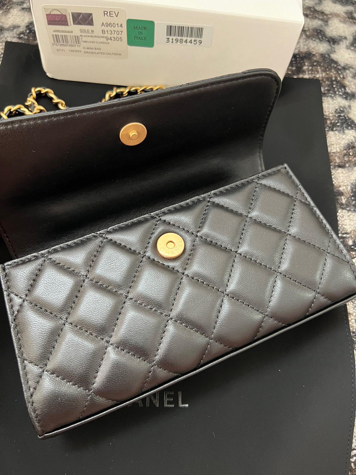 Chanel Woc Black Handbags Pearl Handle Plated Lock Gold 19cm