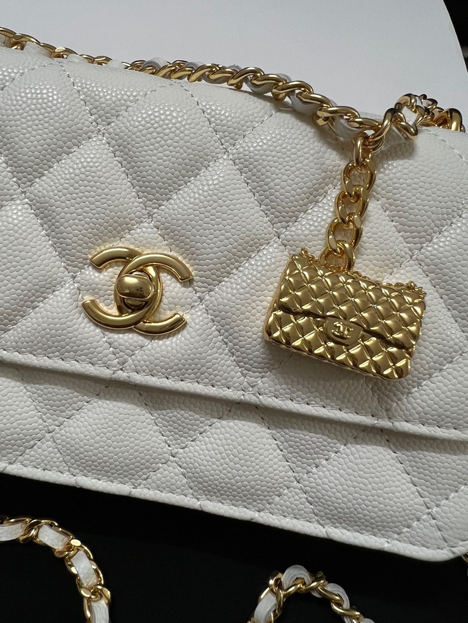 Chanel Woc Charm Handbags White Lizard Skin With Lock Pattern Bag 20cm