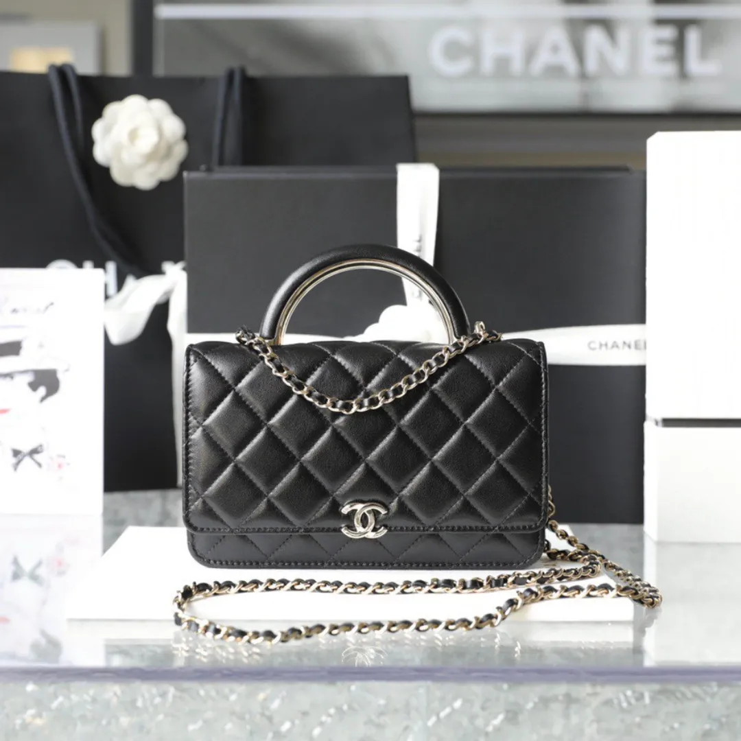 Chanel Woc Handbags Lock Silver Mix Handle Leather 19x12cm