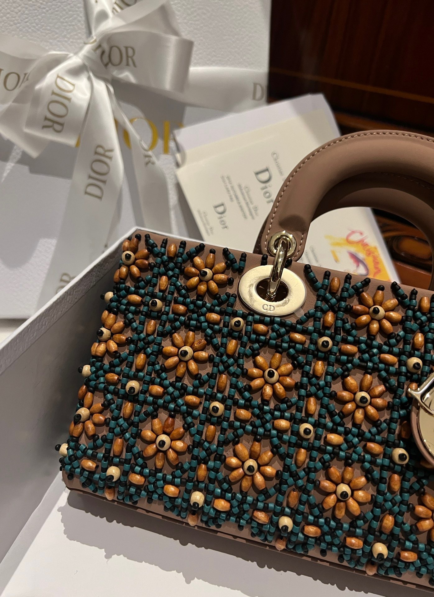 Dior D-Joy Medium Handbag With Beaded Pattern Like Auth 26cm quantity