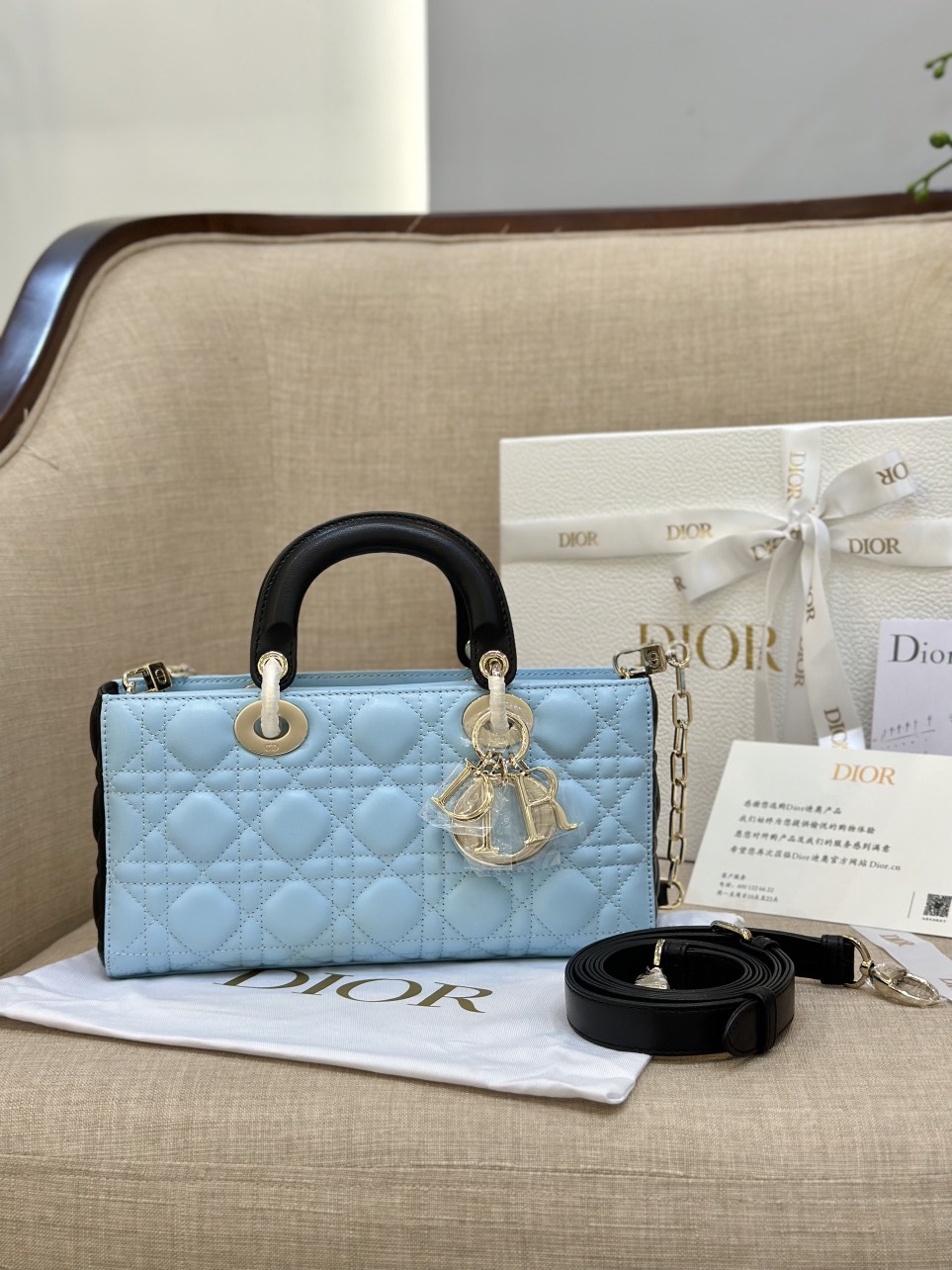 Dior D-Joy Women's Handbag, Ice Blue Cowhide Leather, Like Auth 26cm quantity