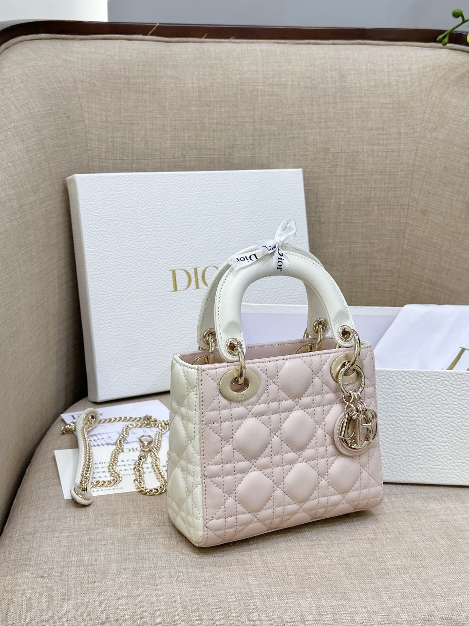 Dior Lady Mini Handbag for Women Pink Cowhide Like Auth 18cm quantity