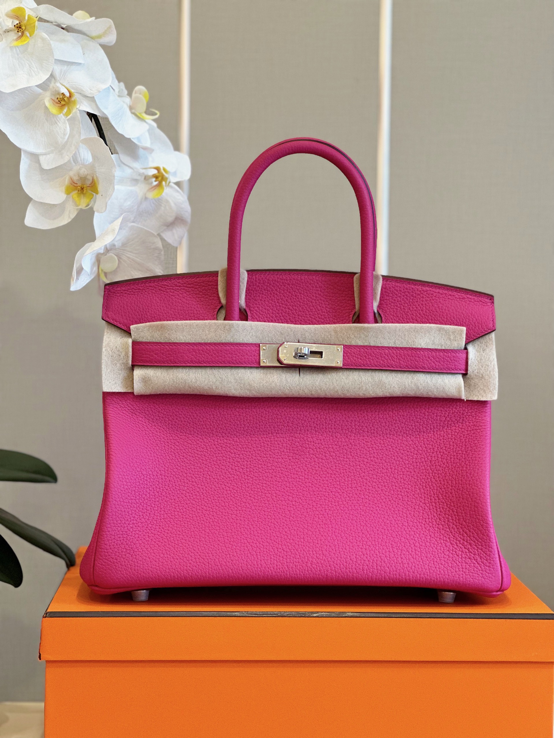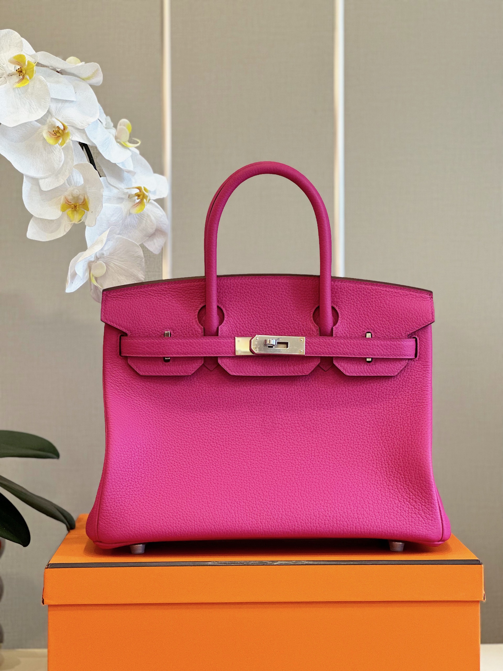 Hermès Birkin 30 Rose Shocking Taurillon Clemence Palladium Hardware