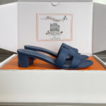 Step into refined elegance with these Hermès replica Oran heeled sandals, designed to offer a sophisticated and modern take on luxury-inspired footwear. Featuring a deep dark blue finish and the signature H-cut upper design, these sandals closely resemble the iconic Hermès Oran style, making them a timeless addition to your collection.