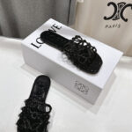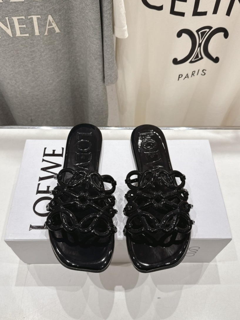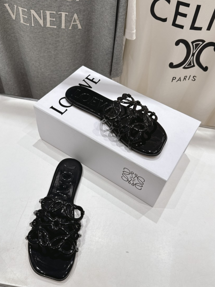 Loewe Leather Petal Anagram Slides in Black
