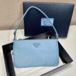 PRADA SHOULDER BAG 24 WITH TRIANGLE LOGO IN SKY BLUE RE-NYLON FABRIC