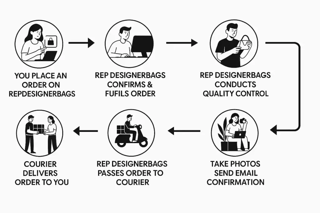 At Replica Designer Bags, we’ve streamlined our process to ensure you enjoy a smooth and worry-free shopping experience. From the moment you place your order to the time it arrives at your doorstep, every step is handled with precision and care. Our team confirms and fulfills your order, conducts strict quality control, and provides you with photo confirmation before shipping. Once handed over to our trusted couriers, your designer bag is delivered quickly and securely—because luxury should always be seamless.